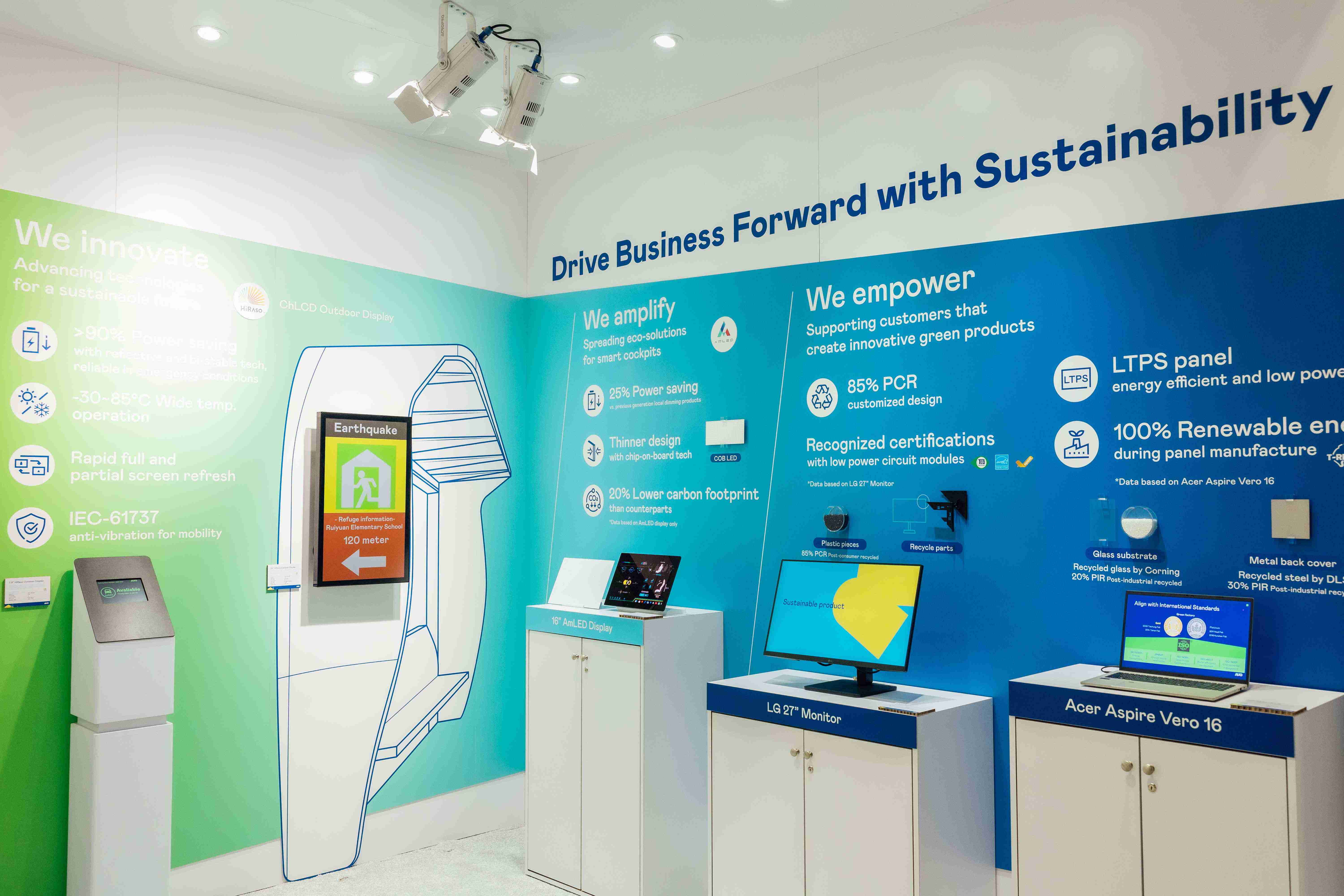 2468BET运用创新显示技术HiRaso胆固醇液晶双稳态技术达到显示零耗能、、、扩大节能省电的AmLED显示技术应用于车用产品、、、、以再生的消费后回收(PCR)塑料及全绿电生产之面板,,应用于笔电及萤幕,,,增加绿色价值。。