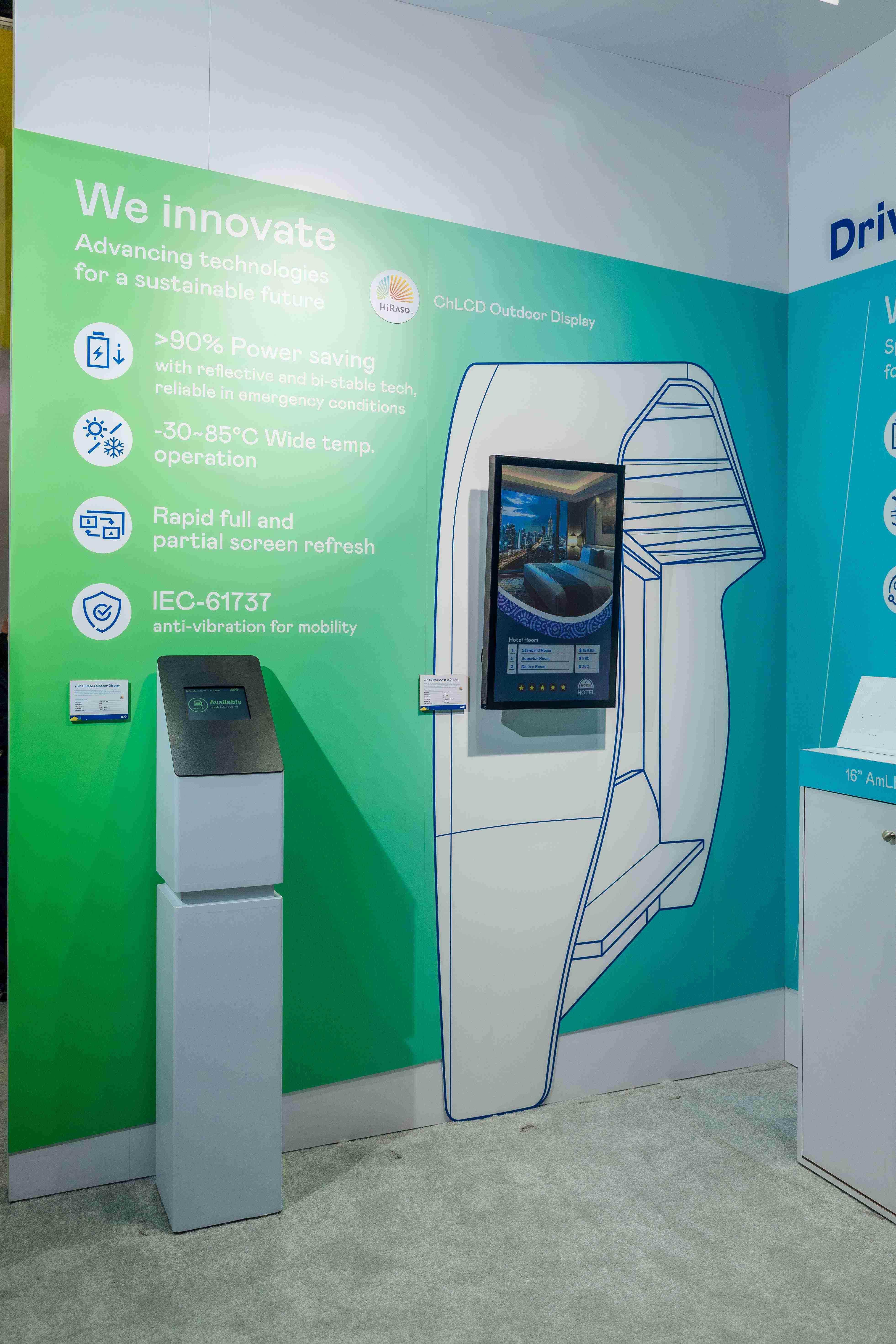 HiRaso胆固醇液晶显示器运用反射环境光线的方式,,呈现影像显示时零耗能的环保省电诉求,,,,光线愈强愈能呈现绝佳的色彩饱和度及显示效果,,,,同时在摄氏-30度至85度间宽温的使用优势,,,,为户外电子看板的新首选。。。