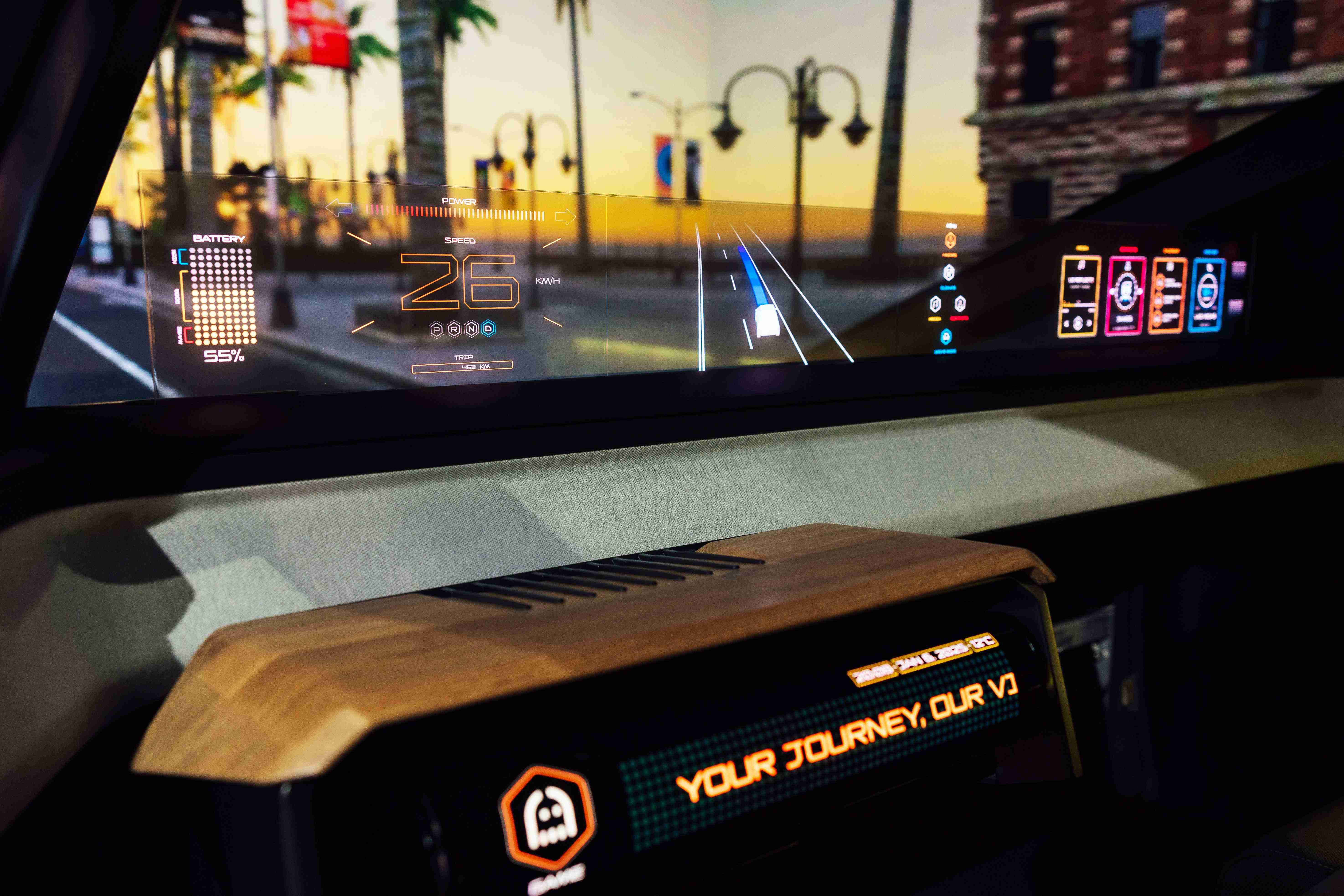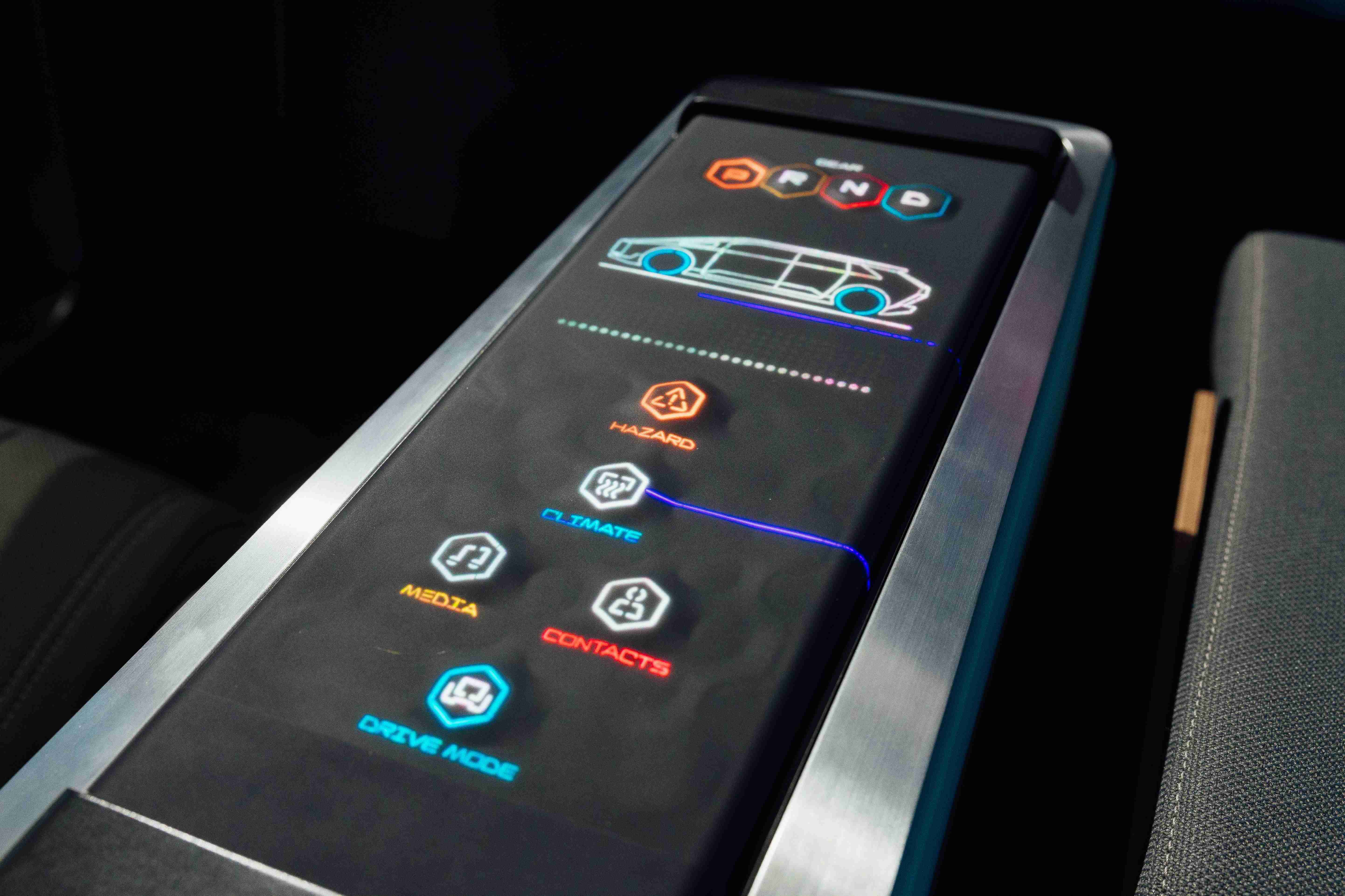 幻境全景天幕(Virtual Sky Canopy)将无缝拼接大型化的透明Micro LED显示器融入至天窗,,,带来沉浸式体验,,,,将人机介面扩展至整个座舱。。 2468BET光电以人性化的设计引领直觉式的人机互动,,,,透过多变形态中控显示(Morphing Center Control)、、、隐藏式智驾介面(Foldable Cruise Pilot)等解决方案,,让乘用者依据自身需求调整、、、、控制座舱内所需功能。。